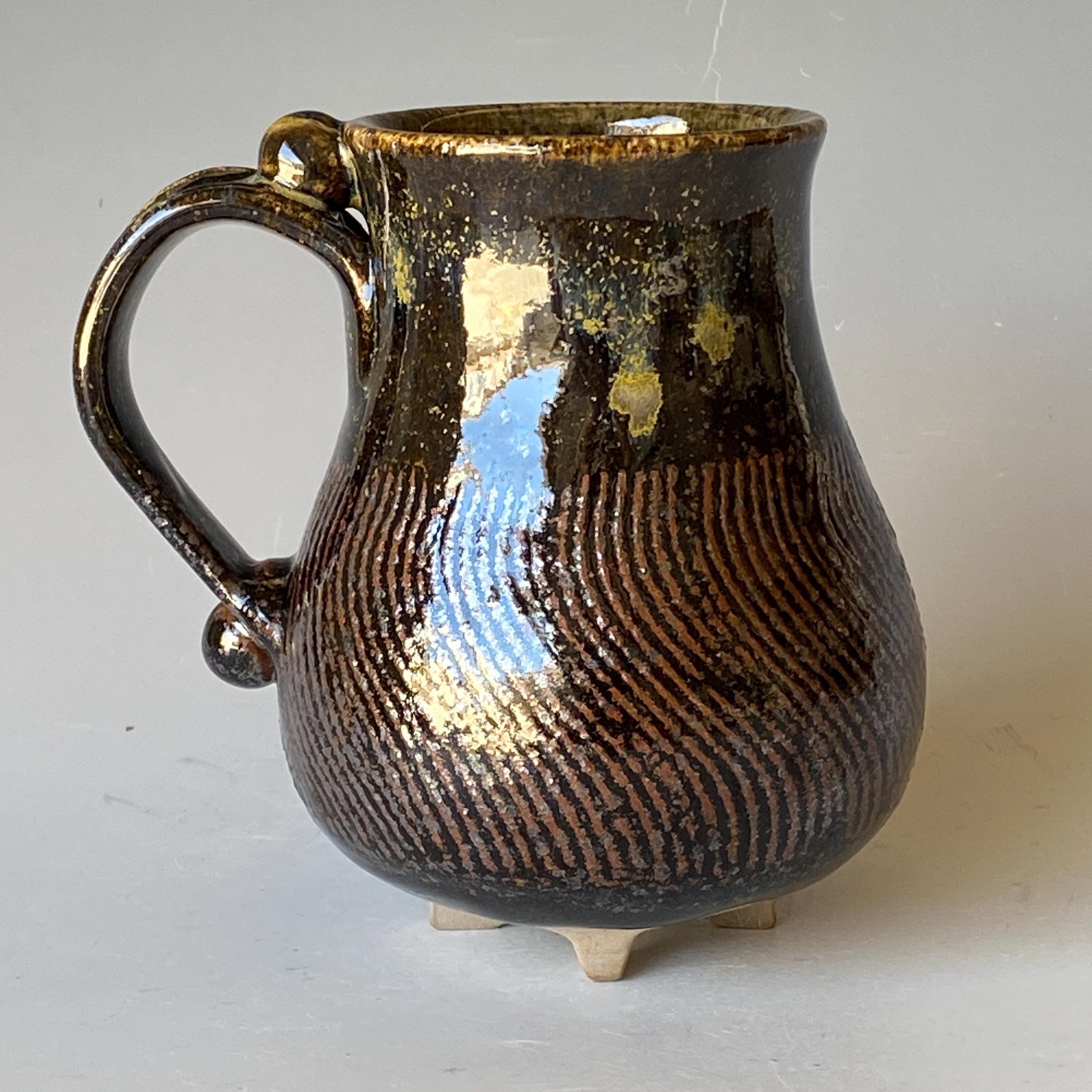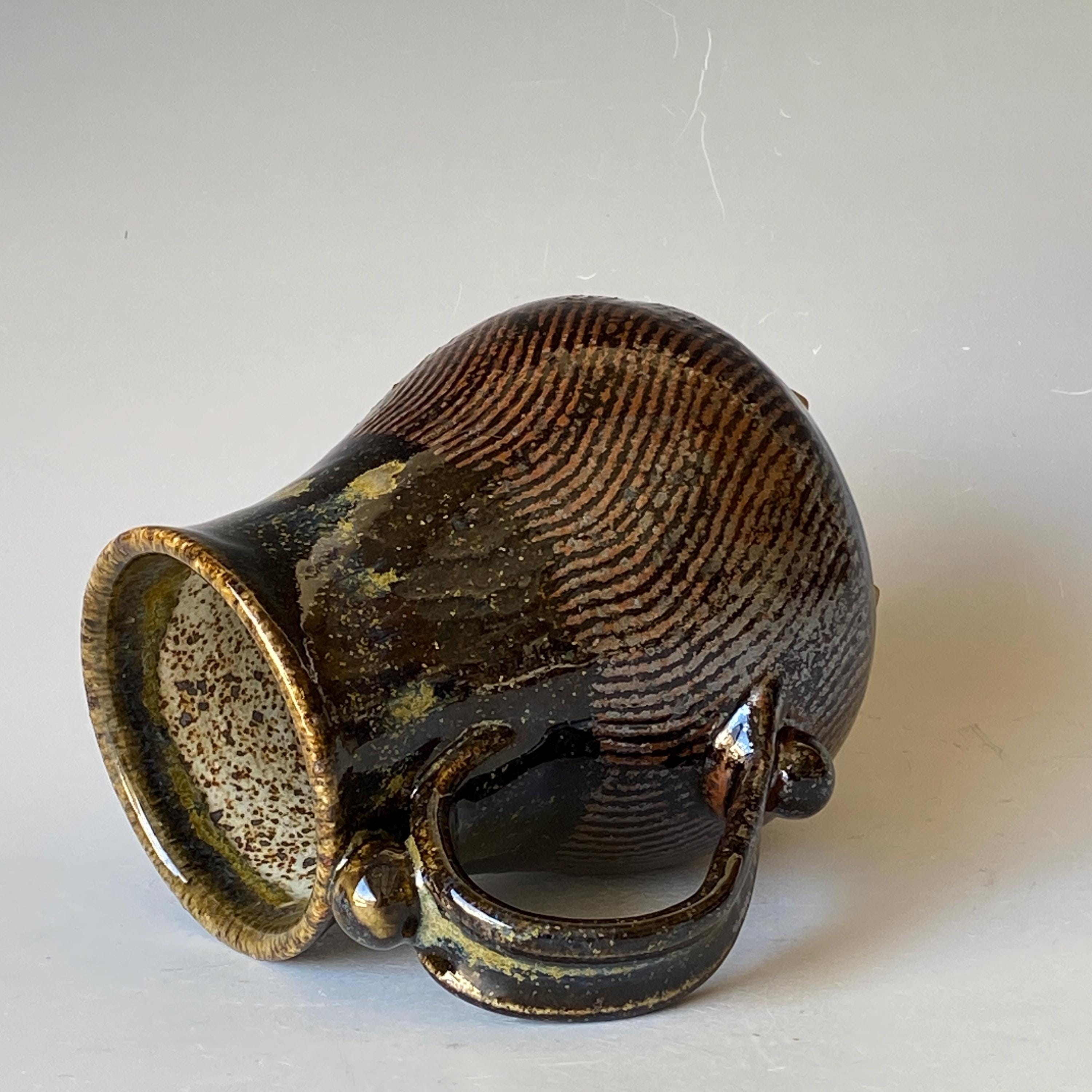 ATTENTION: This Mug is throw from a type of clay with good amount of sand in it, which creates a rough surface on areas that left un-glazed.